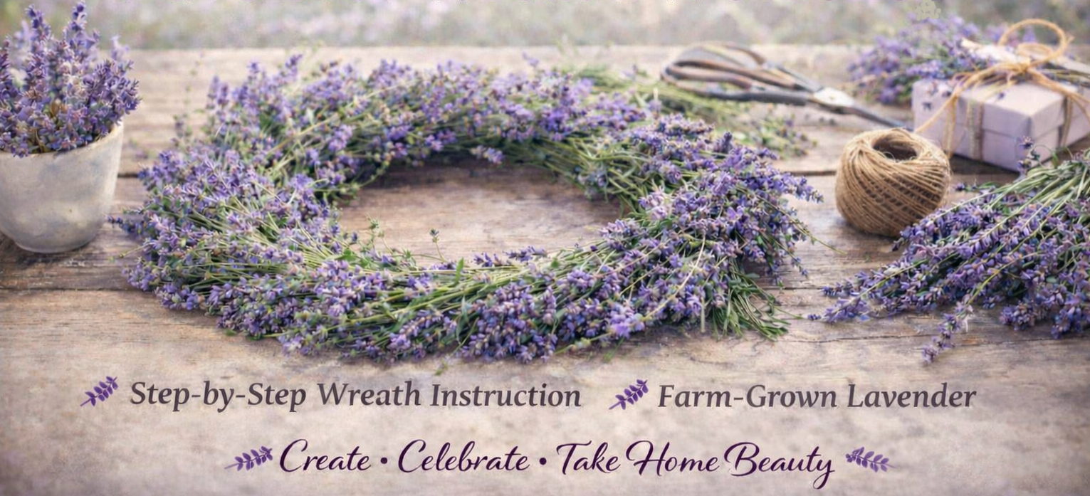 Craft with the season in a peaceful farm setting. Our group workshops invite you to slow down, breathe in the scent of lavender, and create a lasting wreath using farm-grown lavender and native wildflowers, all gathered on the property. This is a welcoming, inclusive space rooted in creativity, connection, and nature.